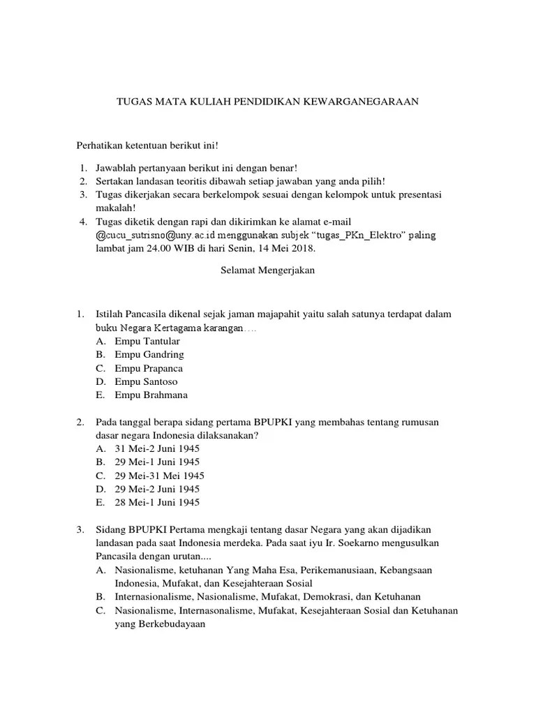 Soal Pancasila Pilihan Berganda Perguruan Tinggi : Soal Latihan Pas Pkn Kelas 12 Sma Semester 1 Tahun 2020 Lengkap Kunci Jawaban Soal Uas Pilihan Ganda Halaman All Tribunpontianak Co Id / Pengantar memahami pendidikan pancasila di perguruan tinggi.. Kunci jawaban soal ujian akhir semester pendidikan agama islam. Tujuan perkuliahan pancasila di perguruan tinggi antara lain sbb., kecuali ………. Soal pilihan ganda bab pancasila. Pilihan ganda & esai / isian latihan soal perumusan dan penetapan pancasila sebagai . Online ✓ langsung lihat hasilnya!